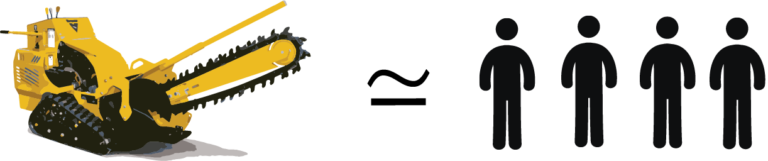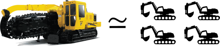 As valetadeiras geram seu próprio material de reaterro pelo fato de triturarem o material escavado. Escavadeiras e retroescavadeiras retiram o material em blocos que, muitas vezes, não são aproveitados para o reaterro, demandando empréstimo de materiais.